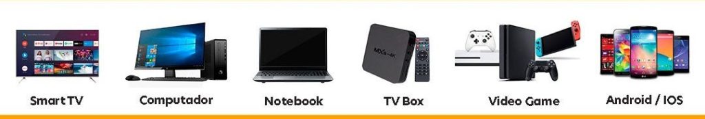 Você escolhe: nosso sistema é compatível com Smartphones, tablets, Notebooks, desktops, SmarTVs e TVBox. Fale com nossos especialistas e eles lhe esclarecerão todas as dúvidas.